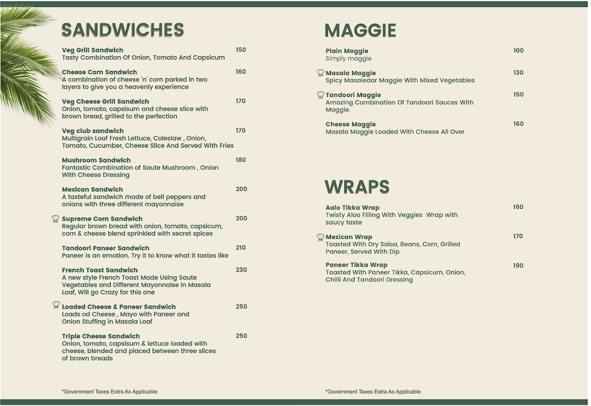 If you're in the mood for something crisp and crunchy, the Nachos are a must-try. From the plain crispy chips served with salsa to the indulgent Baked Nachos—loaded with cheese, baked beans, and vegetables—each bite is a burst of flavor, priced from ₹360 to ₹540.